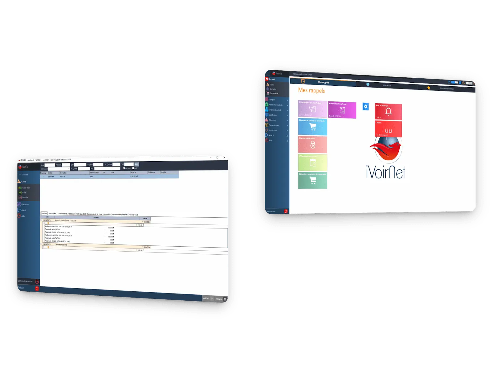 iVoirNet est un logiciel de gestion pensé comme un écosystème complet, qui centralise l'ensemble des fonctionnalités essentielles au pilotage, à la vente et au développement de votre activité.